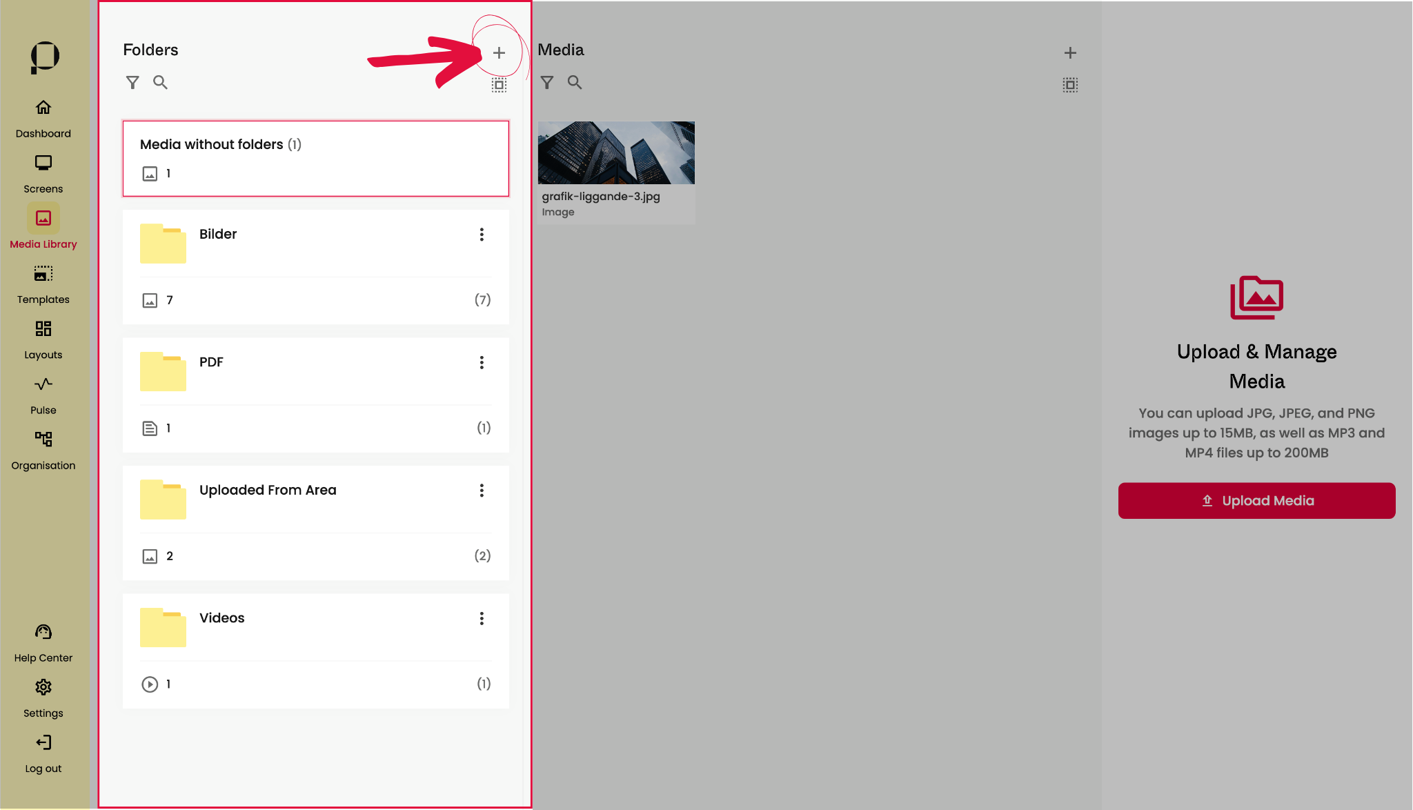 Ett annat alternativ är att klicka på det mindre “+”-tecknet i sektionen “Media”, till höger om rubriken “Media”.