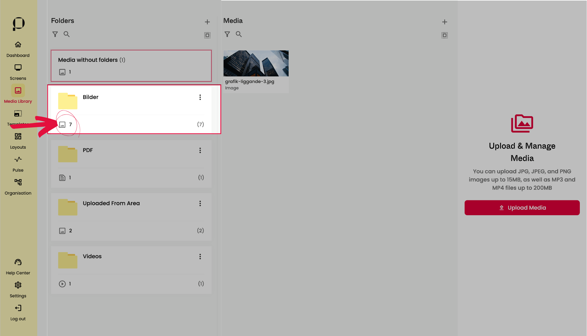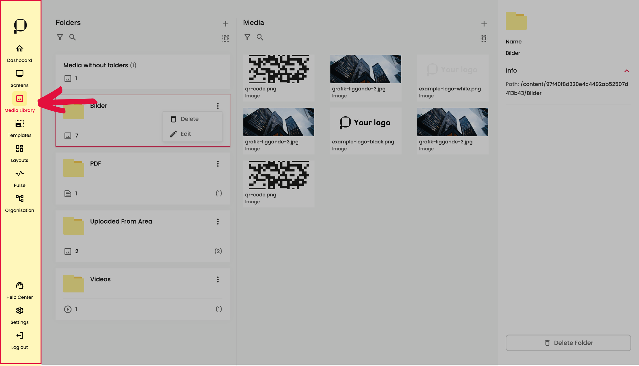 Navigera till Media Library via den gula sidebaren till vänster på skärmen.