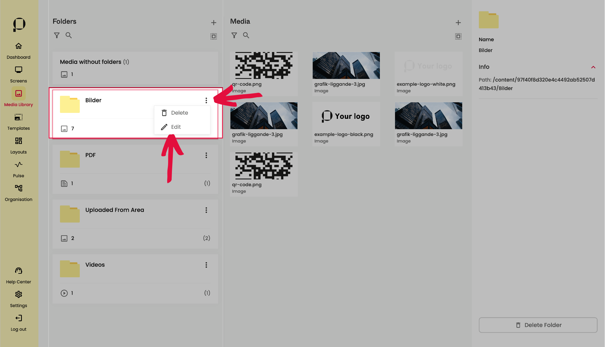 I PicFlow har du möjlighet att bygga ett mediebiblotek bestående av bilder, filmer, ljudfiler och pdf:er att visa upp på dina skärmar. Du hanterar dina mediefiler i sektionen Media Library. I denna sektion av User Guiden går vi igenom hur du hanterar dina filer, och strukturerar dem för att uppnå ett så effektivt arbetsflöde som möjlig i PicFlow.